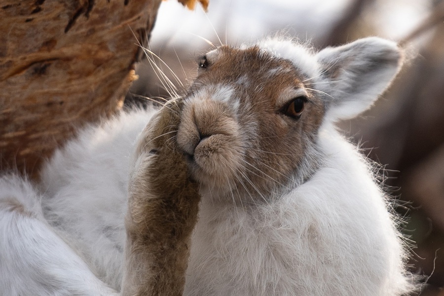 На заповедных территориях Камчатки у зайцев-беляков идёт процесс линьки — белоснежные наряды меняются на серо-бурые. Эти «новые шубки» помогут животным маскироваться от хищников в бесснежный период.